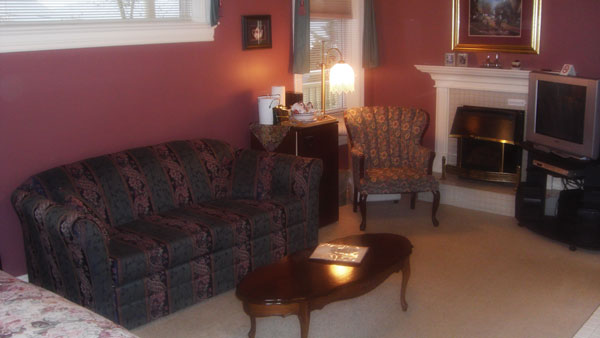 An ample sized suite with Queen sized bed as well as a Queen sized Hideabed. The double jacuzzi in the suite provides a soothing touch at the end of a busy vacation day. The ensuite has a shower and the gas fireplace provides a relaxing or romantic mood. TV/VCR/DVD, CD/Radio, wireless internet access and A/C are provided in addition to fridge and coffee maker. There is a balcony to relax on and enjoy visiting with other guests. This suite has a private entrance.
